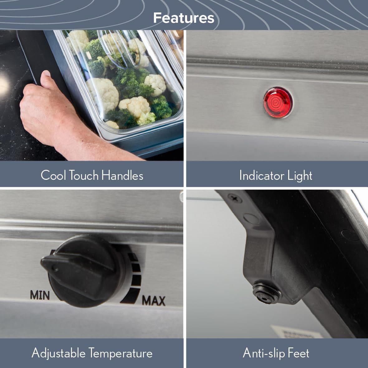 Adjustable Temperature Control: Maintain the perfect warmth for different dishes.